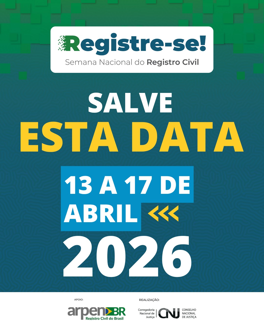 Em breve, o calendário completo com todas as ações e pontos de atendimento será divulgado pelos canais oficiais da Arpen Tocantins, incluindo orientações para quem deseja participar ou agendar seus serviços durante a Semana Registre-se 2026.